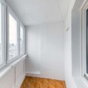 - Просторная лоджия застеклена тройными стеклопакетами «Альбиносы», благодаря которым можно рассматривать вариант утепления.