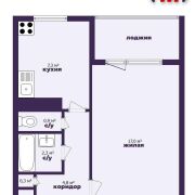 - Общая площадь квартиры составляет 33,1 кв.м, жилая площадь 17 кв.м, кухня 7,3 кв.м.