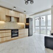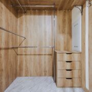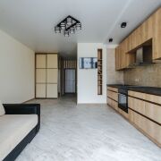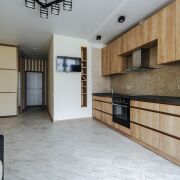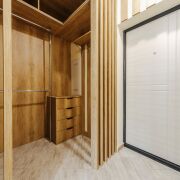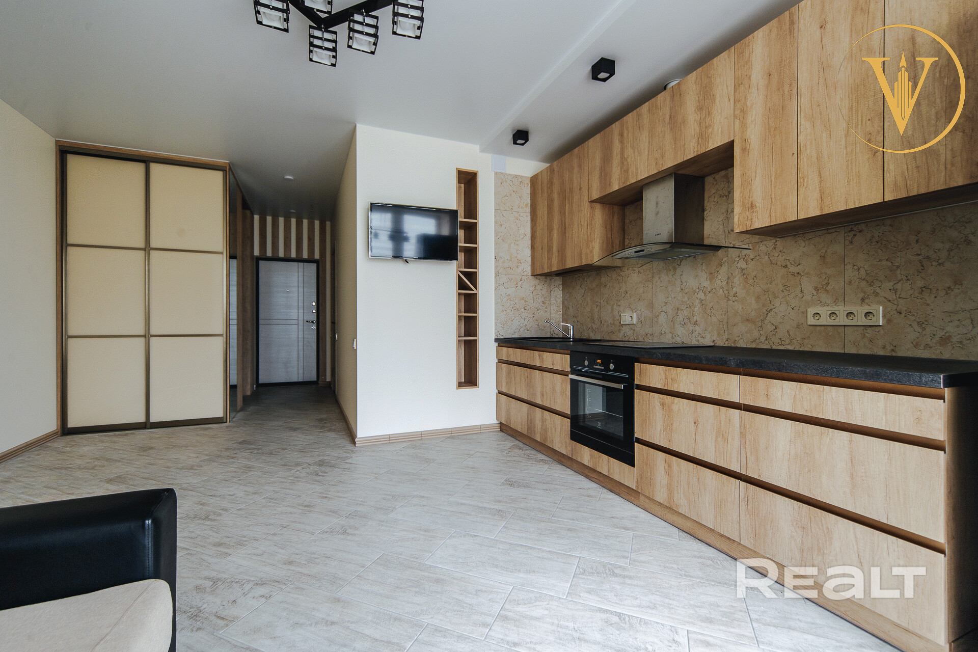 Установлена встроенная кухня с бытовой техникой, оборудована гардеробная.