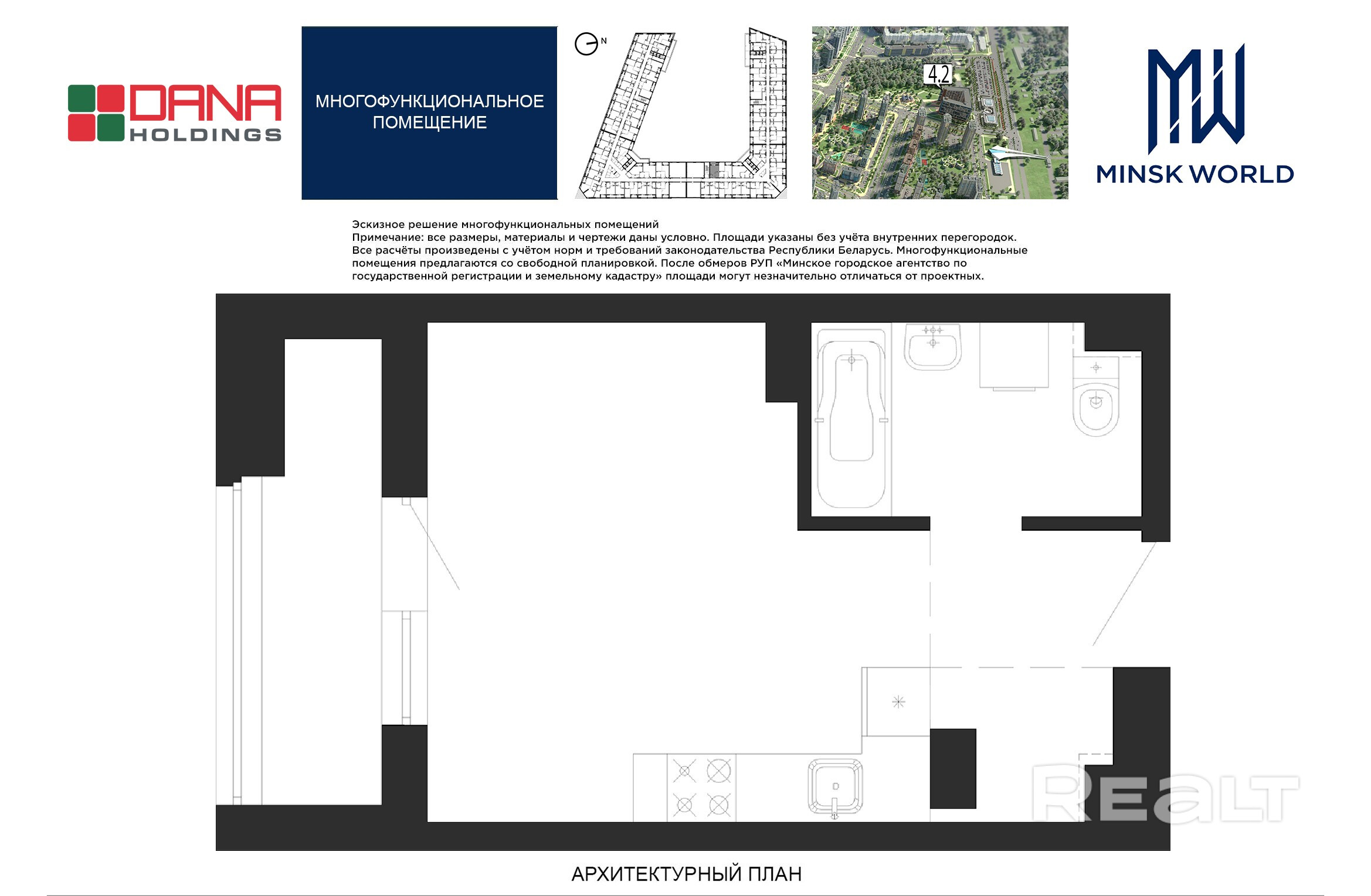 Высота от пола до потолка — 2,67 м. Большинство бизнес-апартаментов имеют панорамные окна, в каждом — лоджии.