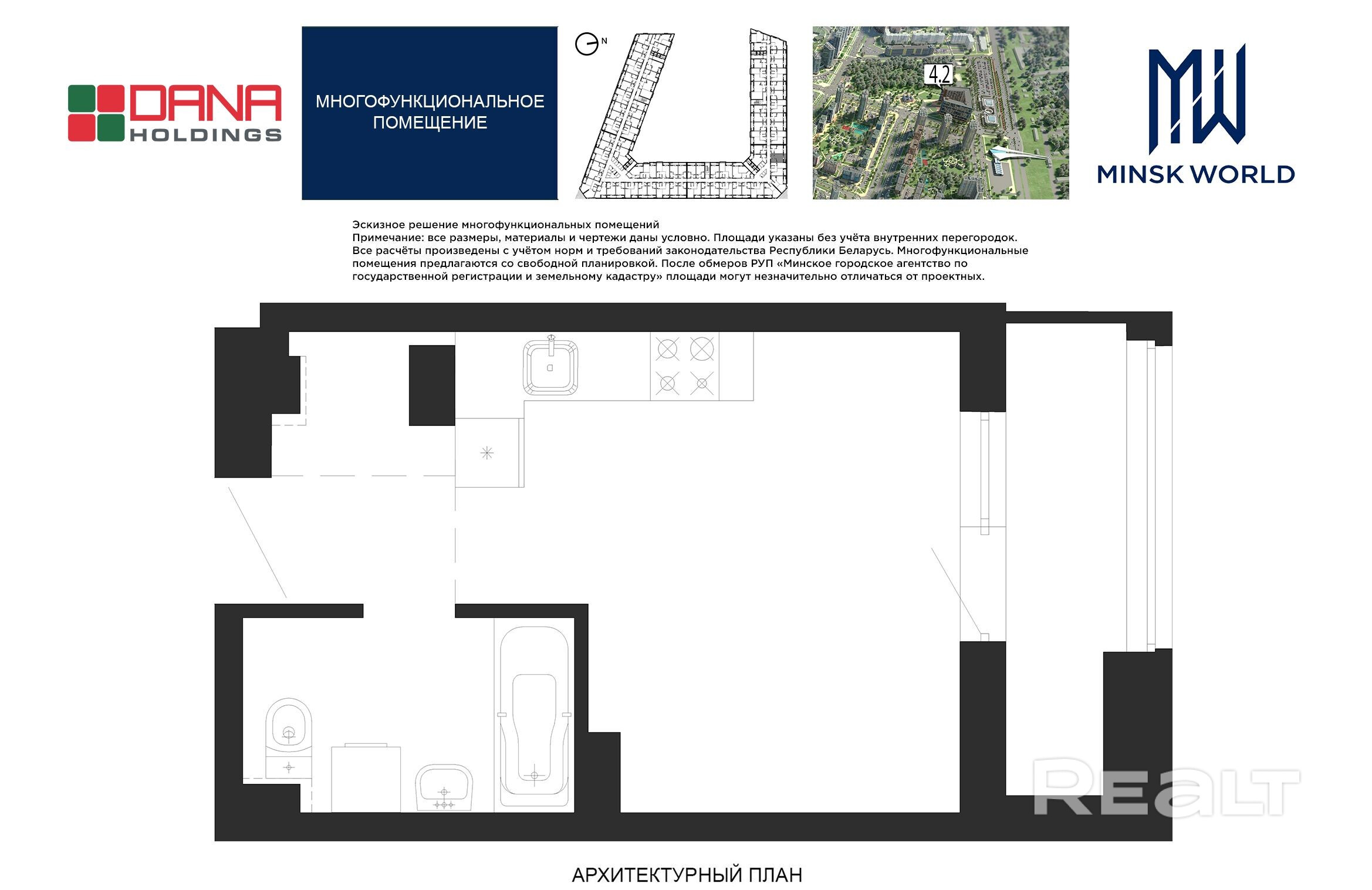 Высота от пола до потолка — 2,67 м. Большинство бизнес-апартаментов имеют панорамные окна, в каждом — лоджии.