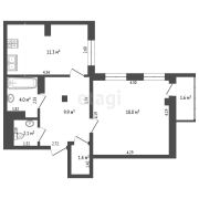 Общая площадь 48,3 м2 по СНБ, кухня 11,3 м2, комната 18 м2, высота потолков - 2,65 м