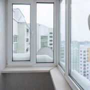 Застекленная лоджия, выходящая в тихий, уютный двор с огороженной детской площадкой - тишина и безопасность.