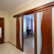 В комнате раздвижные двери из массива - эргономика и стиль