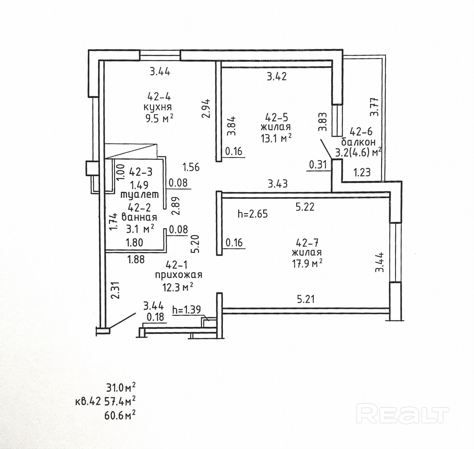 60.6 м²