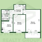 — 14,79 кв.м— просторная, светлая комната с выходом на застекленный балкон