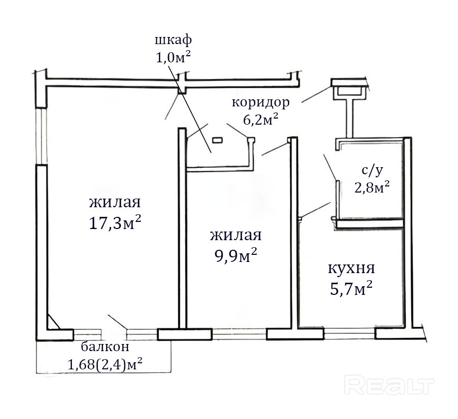 * общая площадь -45,3кв м, обеспечивающая удобное зонирование пространства.