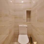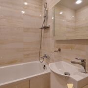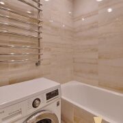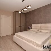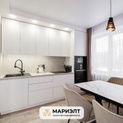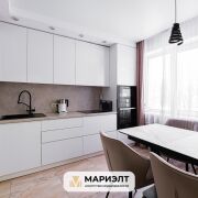 На полу в комнатах ламинат, в коридоре, гостиной и на кухне крупноформатная плитка, санузел раздельный, установлены окна ПВХ, металлическая дверь, встроенная мебель, замена коммуникаций, радиаторов.
