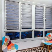 - Из гостиной есть выход на просторную лоджию с панорамным остеклением, откуда можно любоваться чарующими живописными закатами. В спальне установлены панорамные окна и французский балкон, здесь утренний свет мягко наполняет пространство.