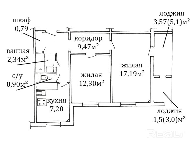 Удачная планировка: просторная кухня и редкое преимущество — большая двойная лоджия.