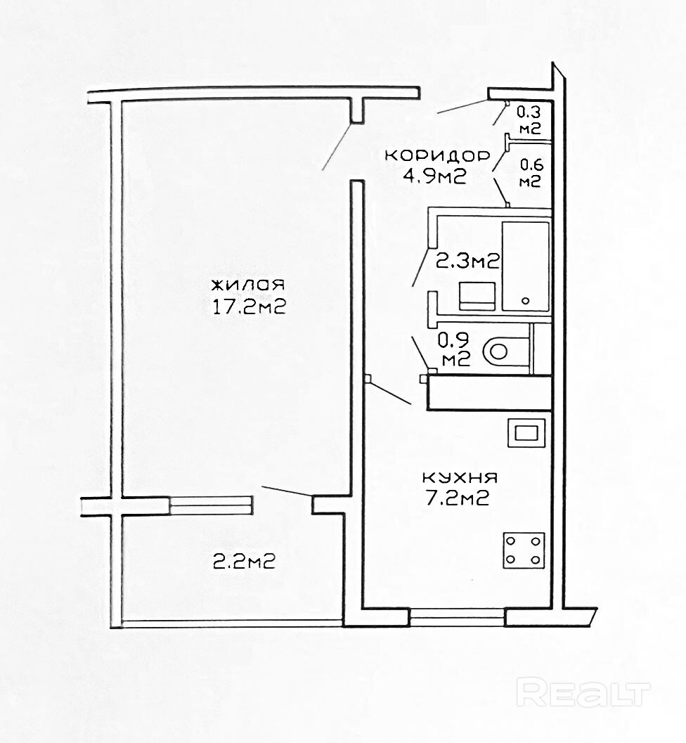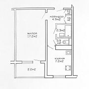 Планировка продумана до мелочей: светлая комната 17,2 м2 с выходом на застеклённую лоджию, просторная кухня 7,2 м2, раздельный санузел и удобный шкаф-купе в коридоре. Общая площадь — 35,6 м2 по СНБ.