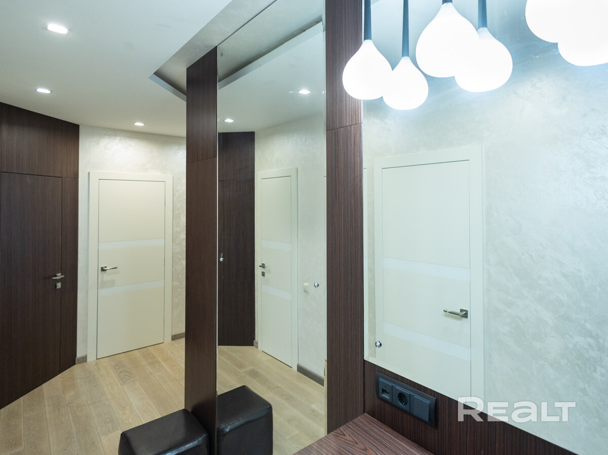 Планировка включает четыре изолированные комнаты, просторную кухню 13,4 кв.м., два санузла, лоджию и балкон. Ремонт выполнен с акцентом на качество и функциональность: использованы натуральные материалы, установлены деревянные стеклопакеты, система теплых полов в ключевых зонах и кондиционеры Mitsubishi в каждой комнате.