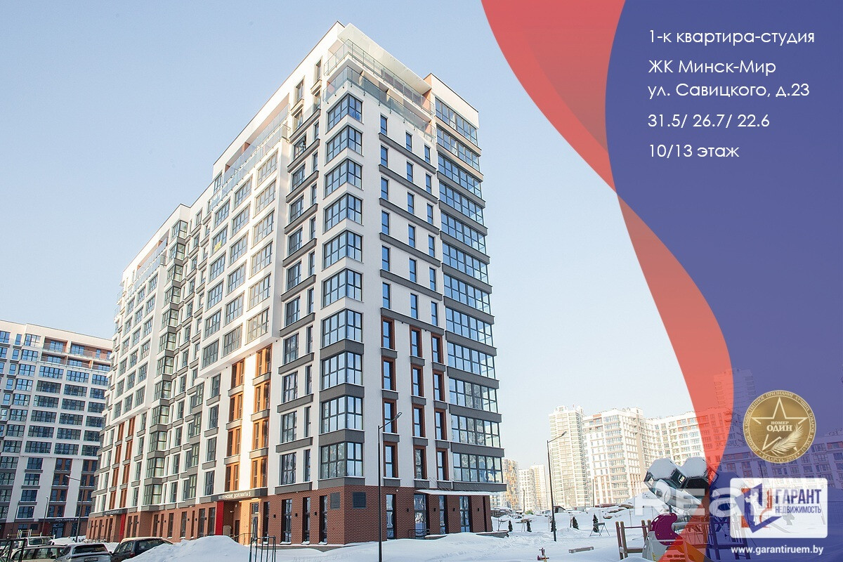 В продаже квартира-студия в ЖК «Минск Мир» расположена по адресу ул. Савицкого, 23.