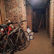 Отдельная кладовая в подвале, оборудована стеллажами.
