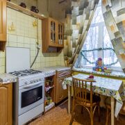 В комнатах на полу доска, на кухне линолеум.