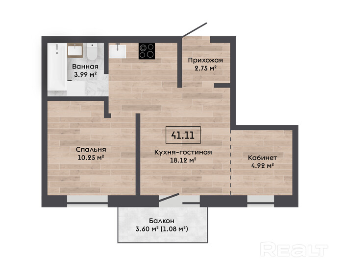 📐 Общая площадь — 41,11 м2