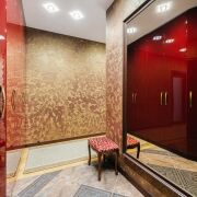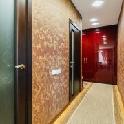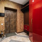 - В отделке использованы изысканные материалы: в спальне - итальянские обои, в гостиной и прихожей - венецианская штукатурка, на полу - дубовый паркет и испанская плитка в кухне и санузлах. Ванная комната оснащена эксклюзивной сантехникой из литого камня латвийского бренда RAA.