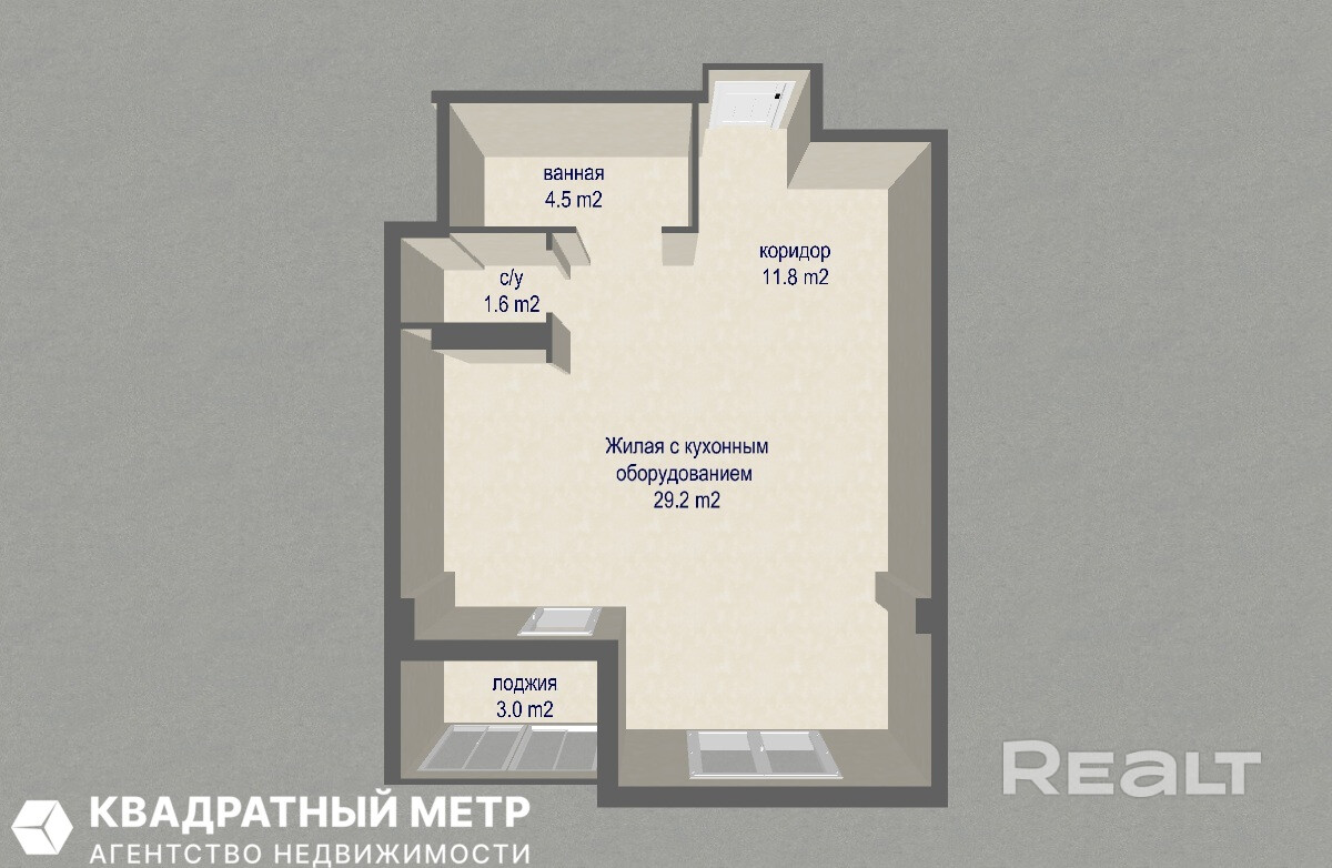 1. Отличная планировка: общая площадь по СНБ – 49,2 м2, жилая площадь 29,2 м2, большая застекленная лоджия - 3,0 м2, Санузел: ванная комната 4,5 м2. и туалет 1,6 м2.