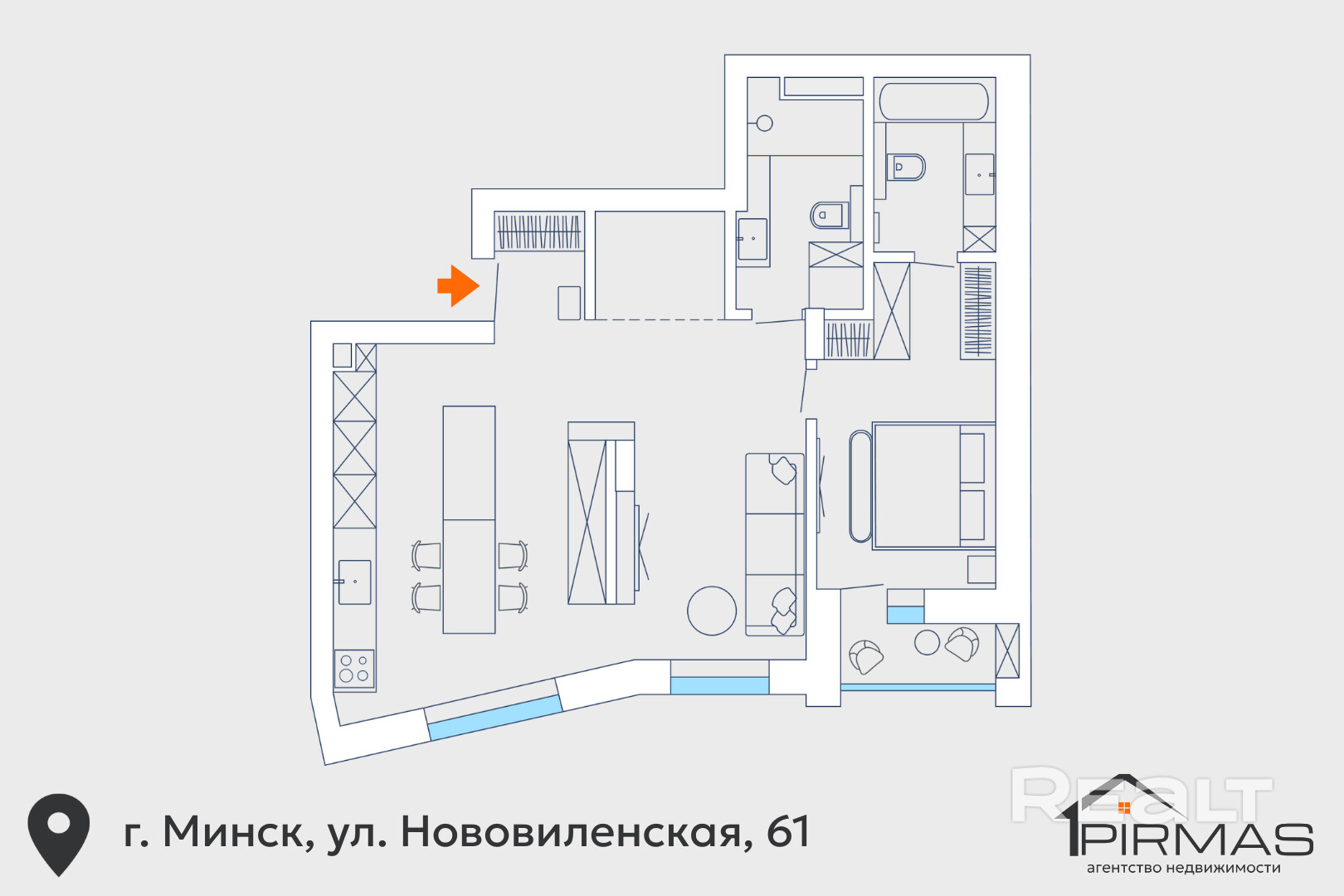 ✅ Двухкомнатная квартира по адресу г. Минск, ул. Нововиленская, 61 расположена в престижном жилом комплексе «Левада» Центрального района. Новый дом, тихая улица, близость реки и парков, развитая инфраструктура — это место для комфортной жизни в городе без суеты и лишнего шума. Квартира подойдёт тем, кто ценит пространство, локацию и возможность завершить интерьер под себя, опираясь на уже выполненные качественные работы.