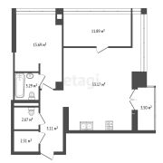 Данная квартира расположена на 14 этаже и имеет свободную планировку. На фото представлен один из вариантов установки перегородок.
