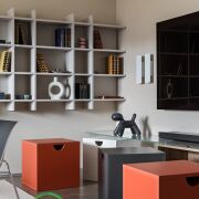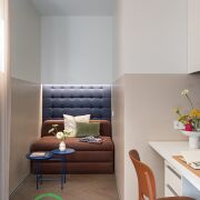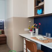 ● Рабочий кабинет/детская: Функциональная комната с раскладным диваном, который превращается в полноценное спальное место, полками и столом с подъемным механизмом. Кондиционер для комфортной работы или отдыха.