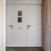 ● Коридор: Функциональный шкаф для одежды, тумбочка, зеркало, шкафчик с автоматами и продуманное место для питомца.