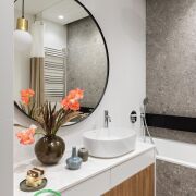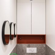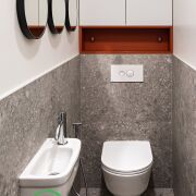 ● Ванная и туалет: Элегантная сантехника Grohe, Laufen, ванна Villeroy & Boch с душем. Подогрев полов, декоративная подсветка, подвесные шкафы и закрытые полки. Установлен бойлер для бесперебойной подачи горячей воды.