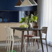Просторная гостиная, спальня, рабочий кабинет (либо детская комната), кухня, ванная комната, туалет, отдельная постирочная, лоджия и коридор. Квартира выходит на две стороны: рассвет встречает в спальне, закат – в гостиной с видом на тихий и уютный двор.