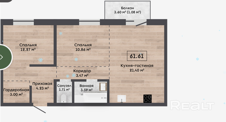 61.61 м²