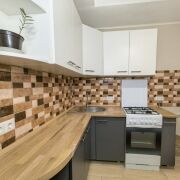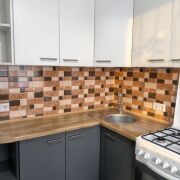 Остаётся встроенная кухня, шкаф, диван, карнизы, люстры. Можно сразу жить.