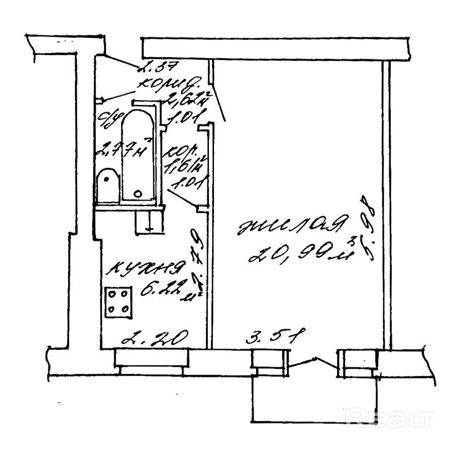 -Санузел совмещён, а мебель остаётся вам - можно въехать сразу или адаптировать пространство под арендаторов.