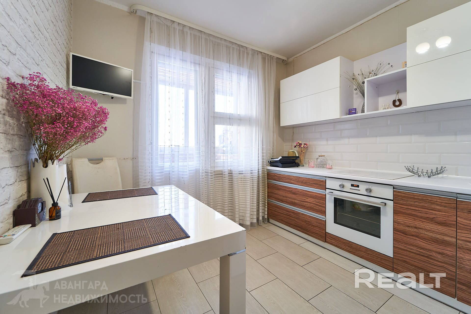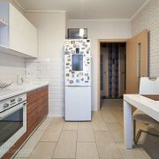 Встроенная кухня, варочная панель, духовой шкаф, холодильник.