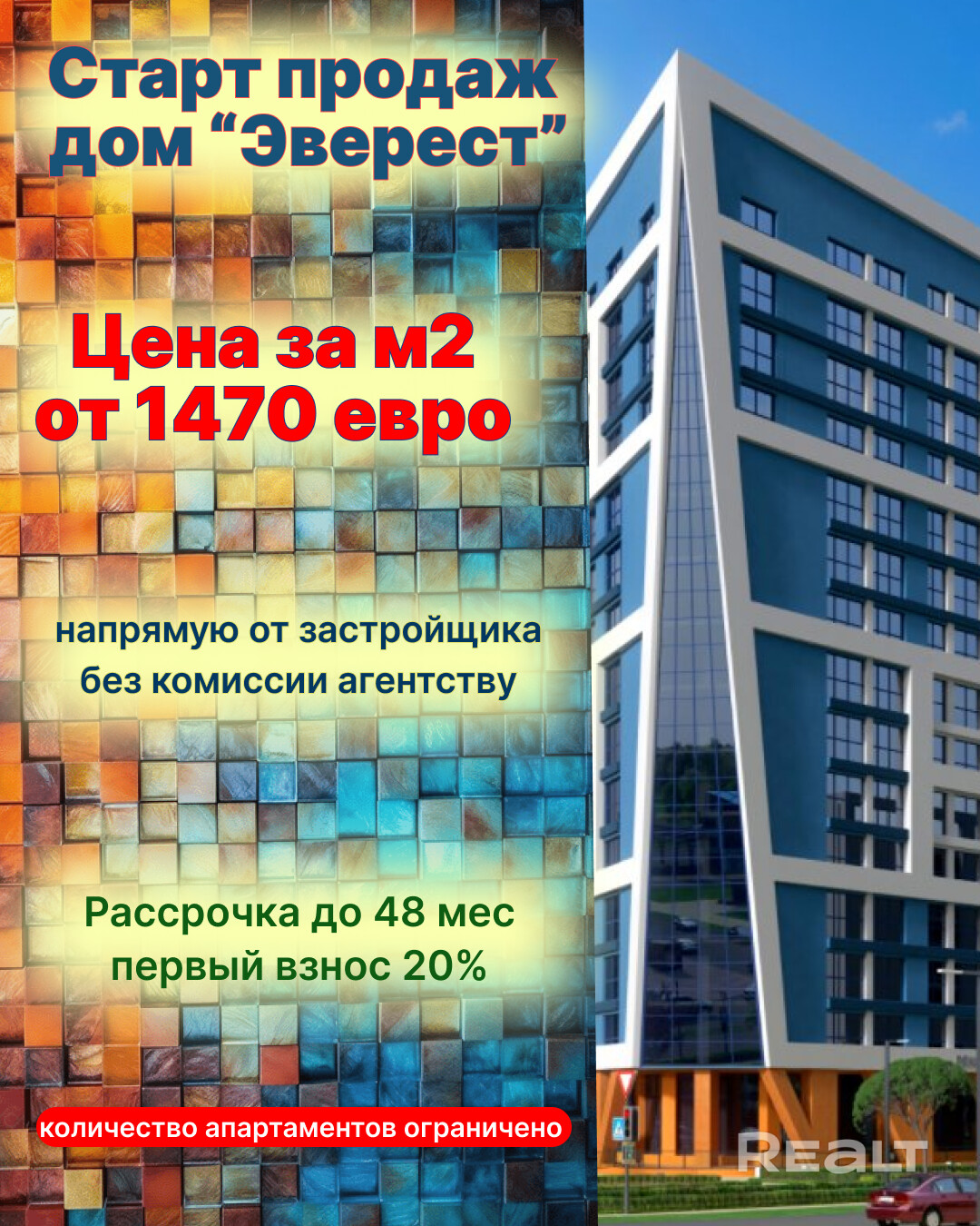 Минск Мир- Дом Эверест|Рассрочка до 48 мес|Новостройка|Апартаменты| Без комиссии|Цена застройщика