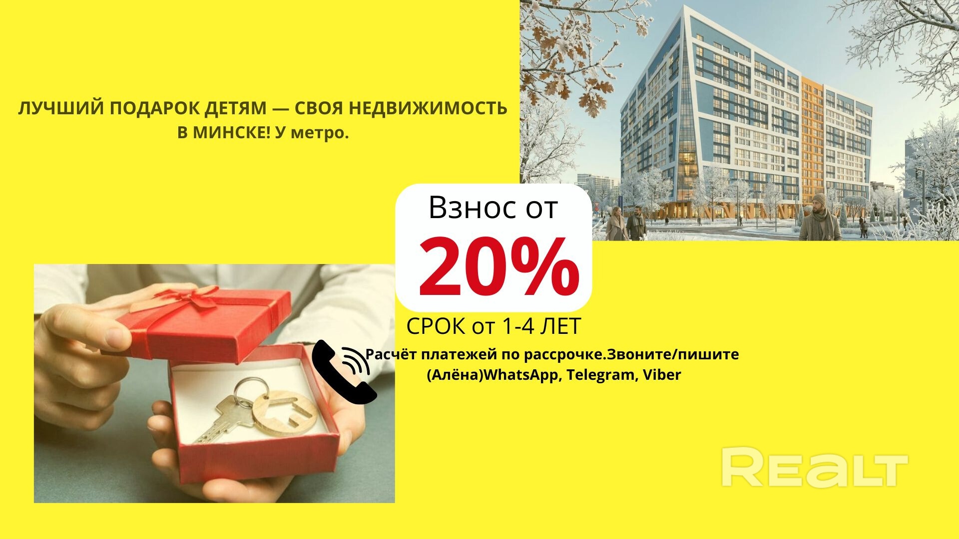 Лучший подарок Детям - это СВОЯ недвижимость! Рассрочка- ВЫГОДНО! Планировки и расчёт в Вайбер.Алёна