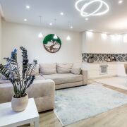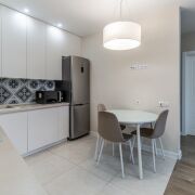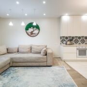 Просторная кухня-гостиная – сердце этой квартиры. Здесь вы сможете собираться всей семьей за обеденным столом, принимать гостей или просто проводить время вместе, наслаждаясь общением и уютом. Кухонная зона оборудована современной бытовой техникой и функциональной мебелью, что позволит вам с удовольствием готовить любимые блюда.