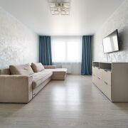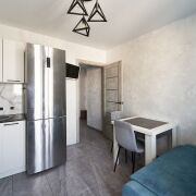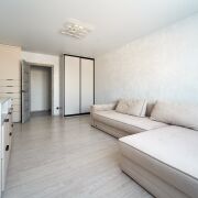 В квартире выполнен хороший аккуратный ремонт. На полу уложен ламинат, потолок натяжной. В прихожей есть вместительная гардеробная.