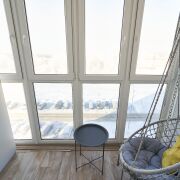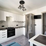 Из просторной кухни площадью 9,3 м2 предусмотрен выход на лоджию. Кухонный гарнитур укомплектован всей необходимой бытовой техникой - газовая варочная панель, электро духовой шкаф, холодильник, телевизор.