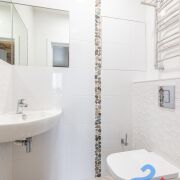 - 2 современных санузла – оба с системой теплых полов. Особенно актуально для семьи с детьми. В обоих санузлах установлены электрические полотенцесушители, бойлер