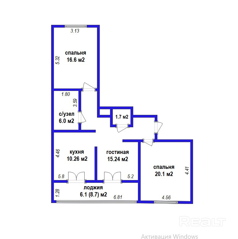 Общая площадь — 92,4 м2 – продуманная эргономичная планировка, просторные изолированные комнаты.