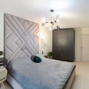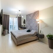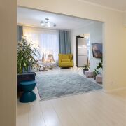 Сделан качественный ремонт, напольное покрытие-ламинат, стены оклеены обоями, потолок выровнен и окрашен. Большие, панорамные окна.