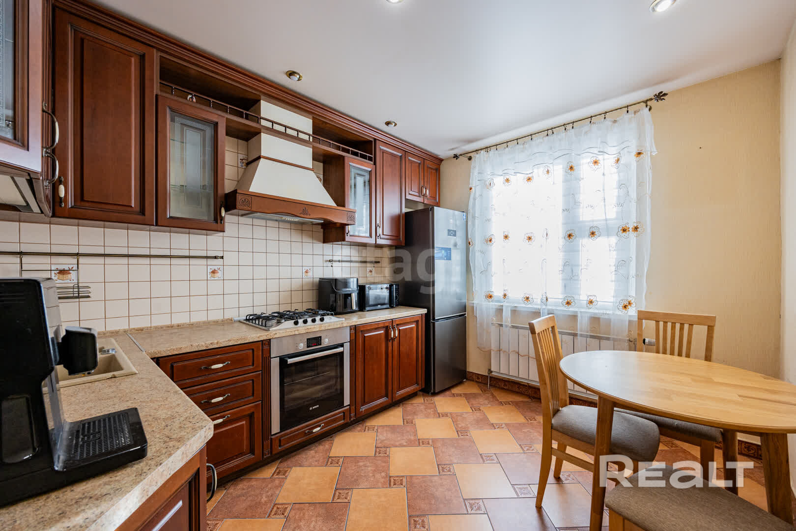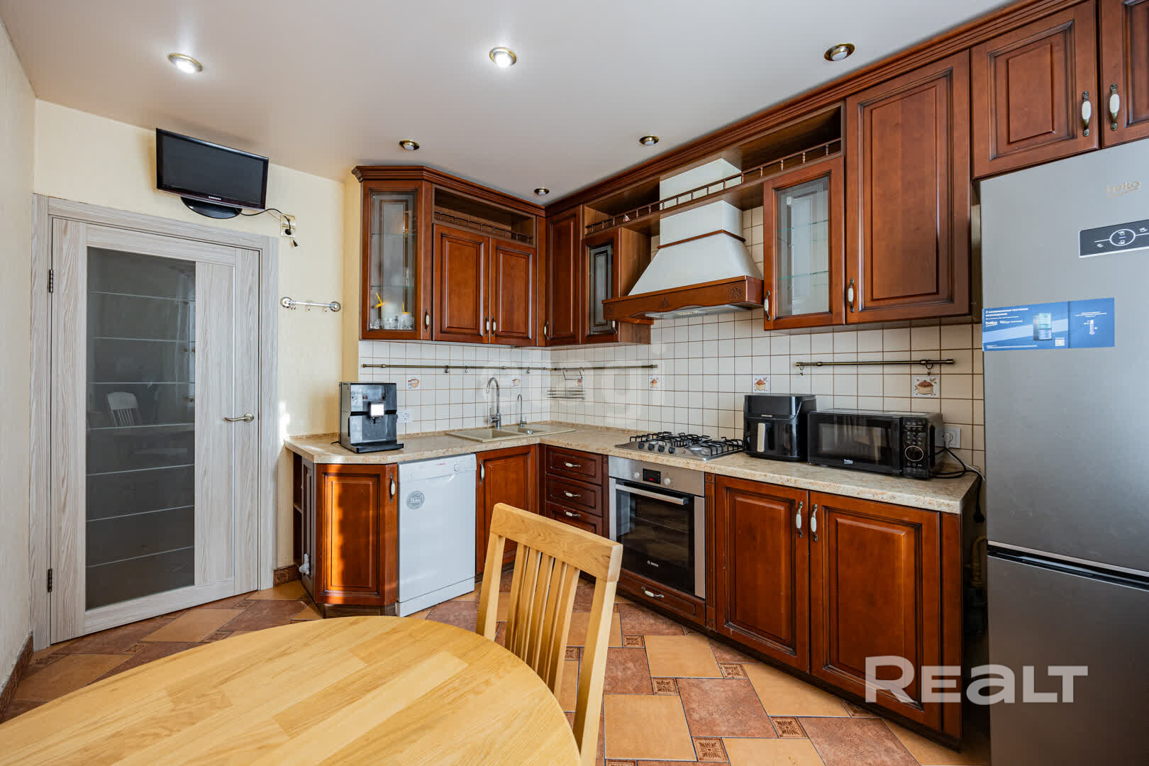 Квартира светлая, солнечная, укомплектована встроенной кухней: духовой шкаф, газовая варочная панель, посудомоечная машина, холодильник.