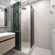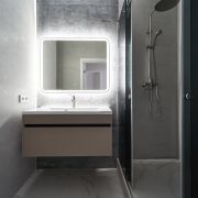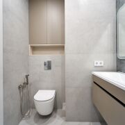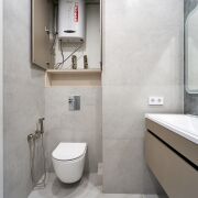 В санузле керамогранит, качественная сантехника,навесной унитаз с инсталляцией,бойлер.
