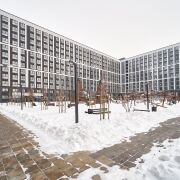 Дворовая территория закрыта для автомобилей и предназначена только для жителей дома. Предусмотрены детские площадки, зоны отдыха.