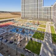 Недалеко от жилого комплекса запланированы детский сад, школа, торговый центр, паркинг и коммерческие помещения.