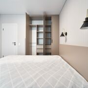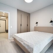 Вся корпусная мебель в квартире (шкаф,гардеробная,кровать) сделана на заказ.