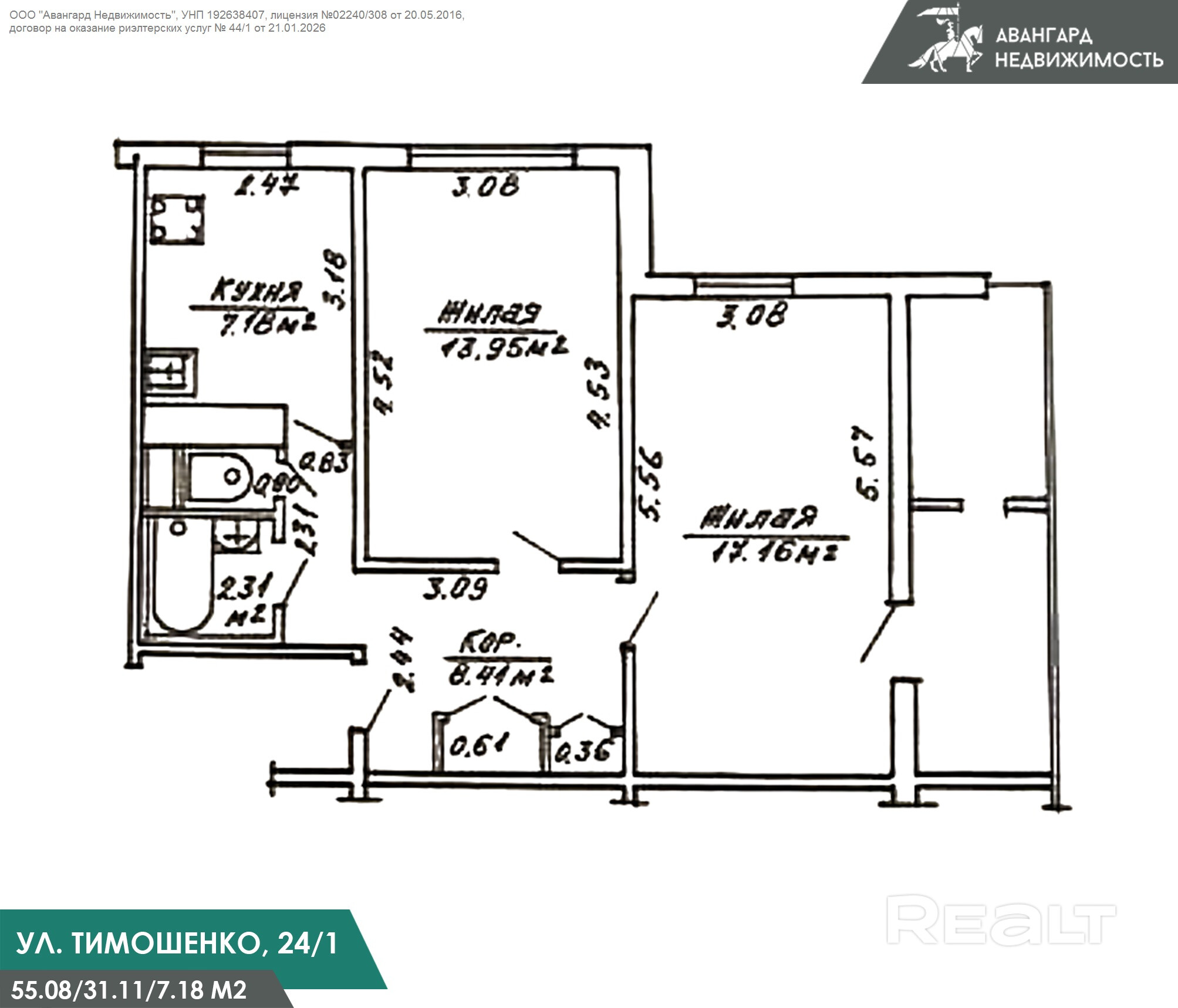 Представляем вашему вниманию 2-комнатную квартиру по ул. Тимошенко д.24 к 1.