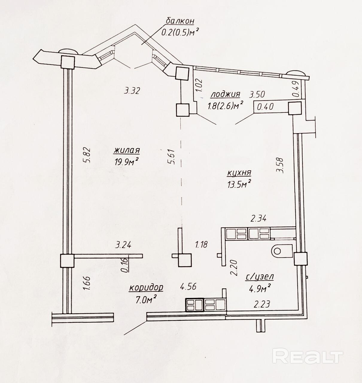 - Площадь кухни
