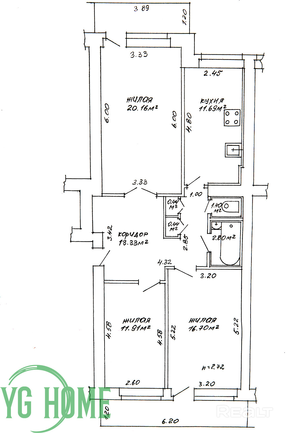 Общая площадь квартиры по СНБ – 82.47 кв.м., общая площадь – 78.87 кв.м., жилая площадь – 48.77 кв.м., высота потолков - 2.72 м. На этаже три квартиры, подъезд аккуратный, жильцы уважаемые и доброжелательные.