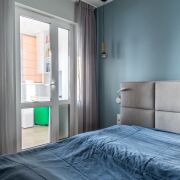 Спальня: современное решение для родителей – мастер-спальня с собственной гардеробной, санузлом и выходом на лоджию.