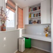 Лоджия: не просто лоджия, площадью 5.1 м2 с прекрасным видом из окна, а полноценный рабочий кабинет! На полу плитка с подогревом. Установлено комфортное рабочее место, места для хранения и для отдыха.